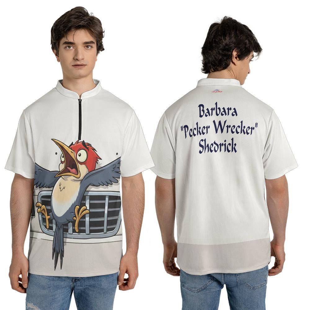 Run over woodpecker... check. Workmates find it in grille of SUV... check. Get Dave's Logo Apparel to make a jersey to commemorate it... priceless.